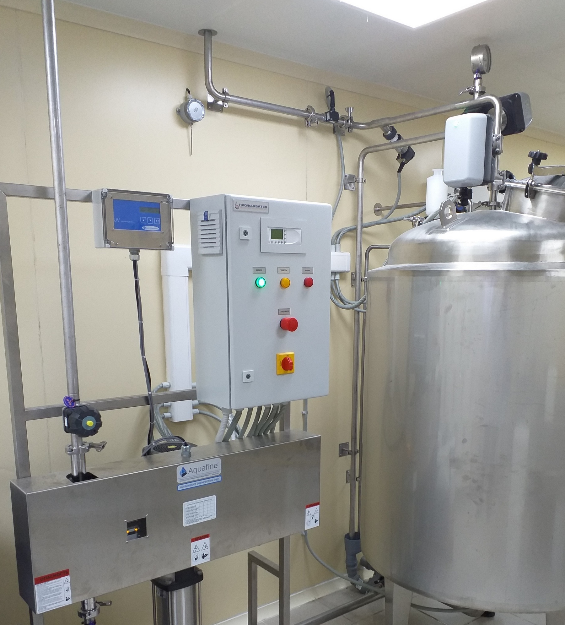 В рамках модернизации предприятия ООО «ПРОФАКВАТЕХ» выполнило поставку и монтаж оборудования системы получения, хранения и распределения воды очищенной, включая поставку трубопроводов и запорной арматуры.